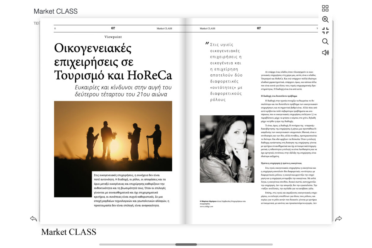 Δεν είμαι άνθρωπος των επιχειρήσεων. Έχω εργαστεί, όμως, σε πολλές ― κυρίως στον εκδοτικό τομέα. Οι περισσότερες εκδοτικές εταιρείες είναι και οικογενειακές επιχειρήσεις κι έτσι, όταν έμαθα ότι θα έπαιρνα συνέντευξη από τη Μαρίκα Λάμπρου, συγγραφέα του βιβλίου «Μυστικά επιτυχίας για οικογενειακές επιχειρήσεις στη νέα εποχή. Για επιχειρηματίες και στελέχη που δεν εφησυχάζουν» (Πατάκης, 2020), είχα ―πώς να το πω;― μια σειρά από ερωτήματα που ήθελα να ξεκαθαρίσω: γιατί οι οικογενειακές επιχειρήσεις στην Ελλάδα βάζουν πάνω ―κι από το κέρδος ακόμα― την οικογένεια;